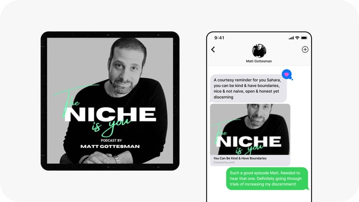 Entrepreneur and thought-leader Matt Gottesman turned fans into superfans when he invited his social media followers to text with him on Community for a more personal and direct connection. With 98% open rates via SMS at scale, Matt grew his podcast 100% month-over-month on average, boosted course sign-ups, and primed members for upcoming book launches – all while providing regular inspirational messages and resources to foster deeper long-term engagement.