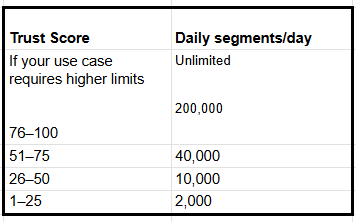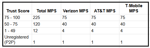 Only T‑Mobile imposes daily limits on the number of message segments sent by Trust Score.