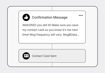 • Contact card: When customers create an automated welcome flow, Community adds a contact card so members can easily save the brand’s number to their phones and ensure the messages they signed up land in their primary inbox.