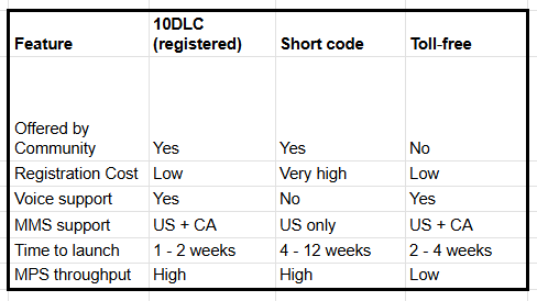 - Community supports 10DLC A2P